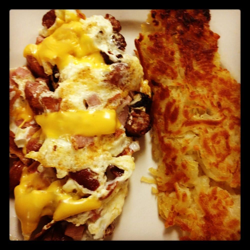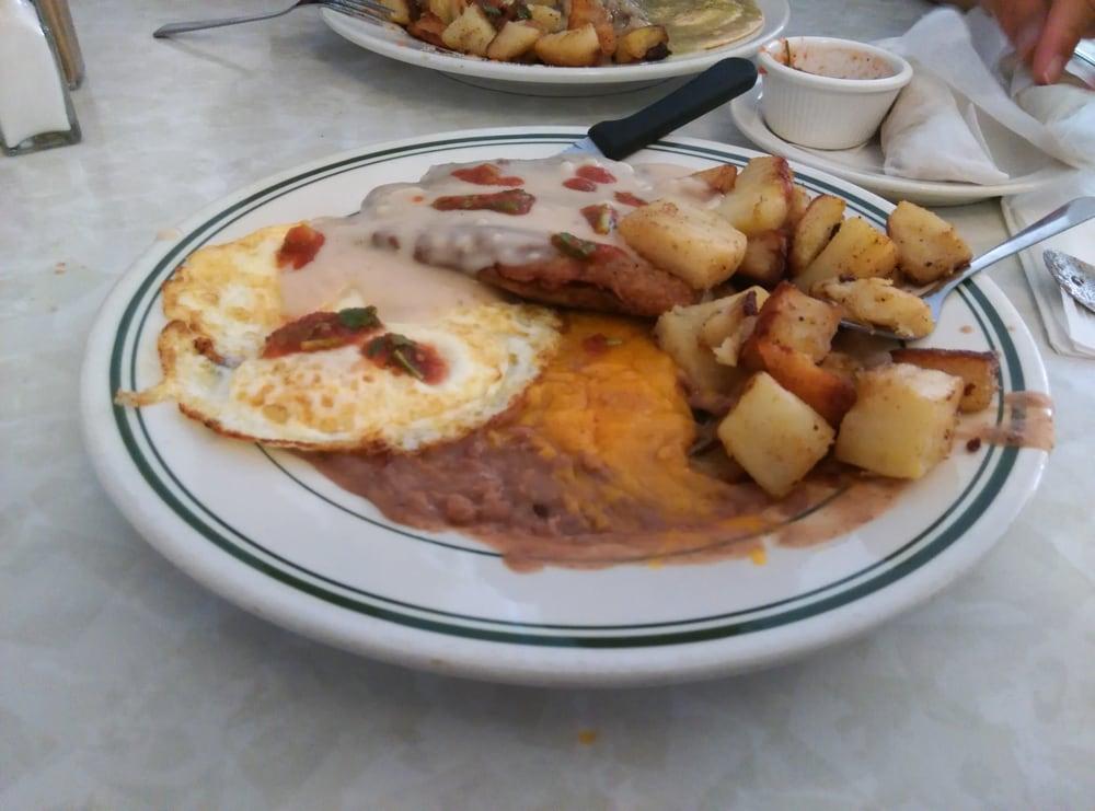 Had the chicken fried steak and eggs with biscuits a drink gravy. Seasoned well with crispy has browns and chunky gravy with ham. Good food great value.